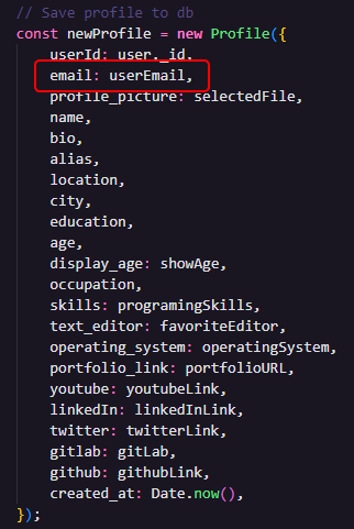 Before documenting the profile fetching endpoint, I fixed the code by adding the email as one of the data that should be saved when a profile was created.