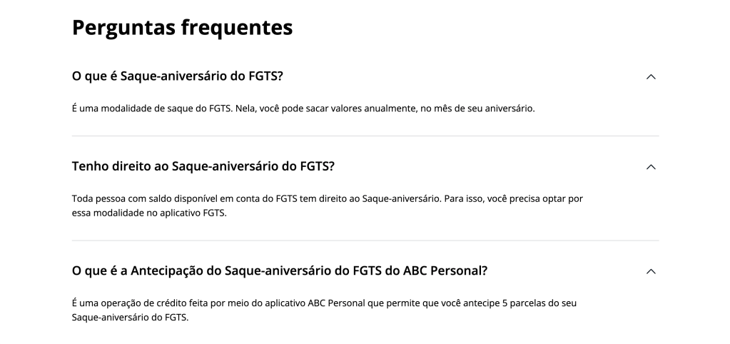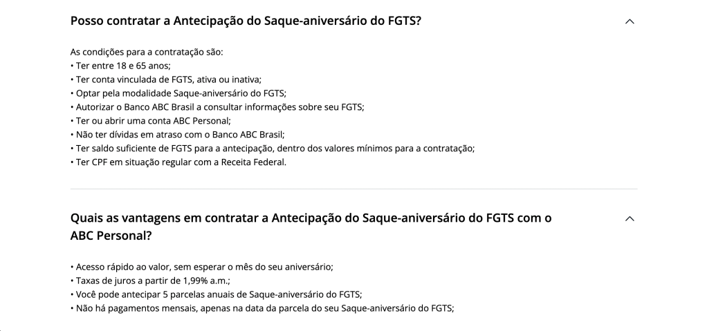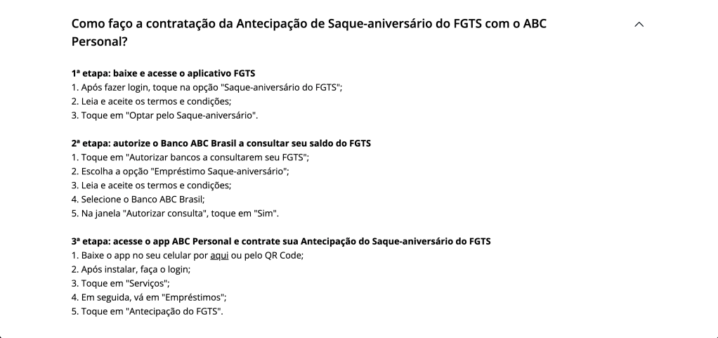 Both Birthday Withdrawal and the Early Access to FGTS Birthday Withdrawal were unfamiliar services with unknown processes for many people. Additionally, ABC Brasil Bank had specific contracting conditions.