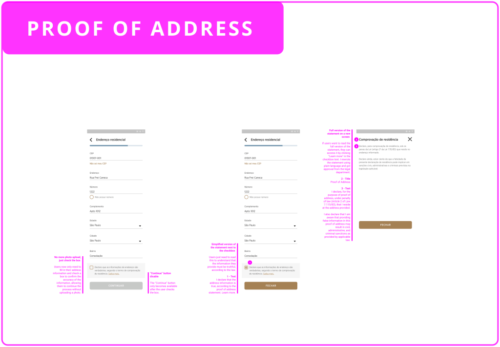 To open a checking account with ABC Brazil Bank, the user must access the ABC Personal app and fill in their information, including their residential address.